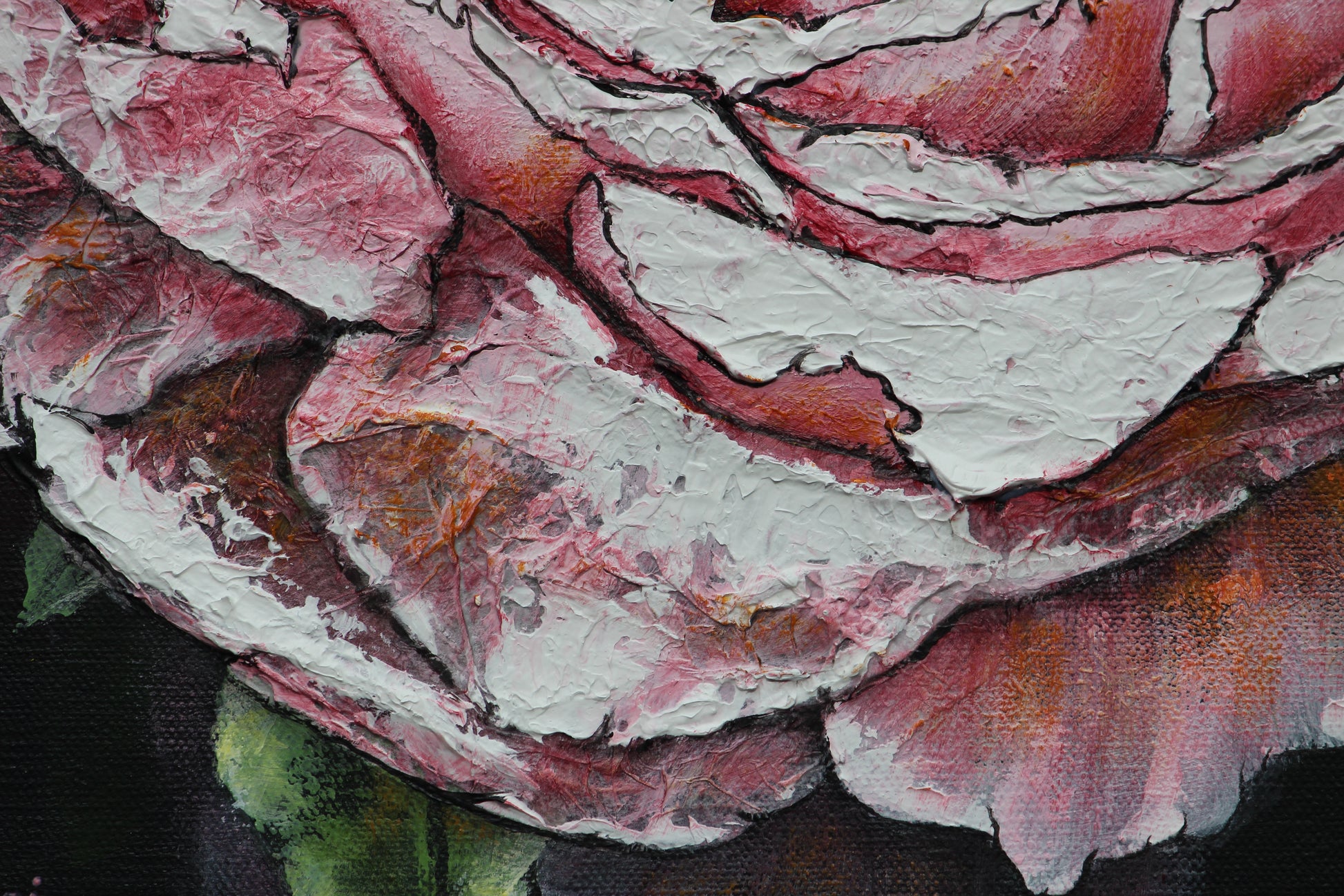 Materials & Techniques: - Acrylic paints in layered blush, white, and golden tones - Matte medium and matte gloss for nuanced light interplay - Fiber paste to sculpt dimensional surfaces and organic contours - Hand-folded tissue paper for petal realism and tactile complexity A radiant homage to nature’s quiet drama, *Just Pinky* captures the bloom of a peony in sculptural detail. Patricia signature textured realism breathes life into each petal, where delicate folds are shaped from hand-treated tissue paper and infused with layered paint and fiber paste. The result is a highly dimensional composition that blurs the boundary between painting and relief sculpture. This piece offers more than beauty; it evokes presence and emotion, making it a striking statement for any discerning collector or curated exhibition. |
