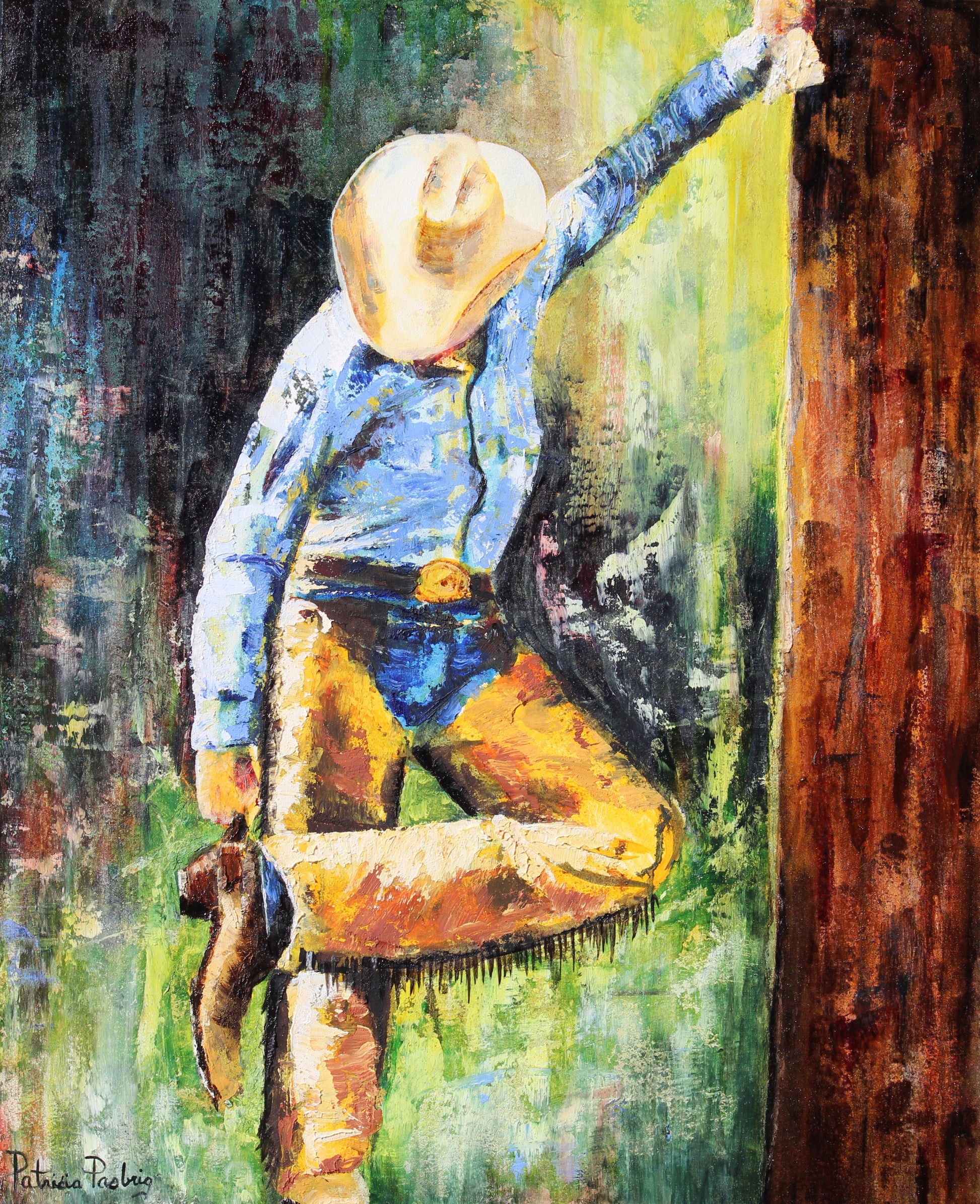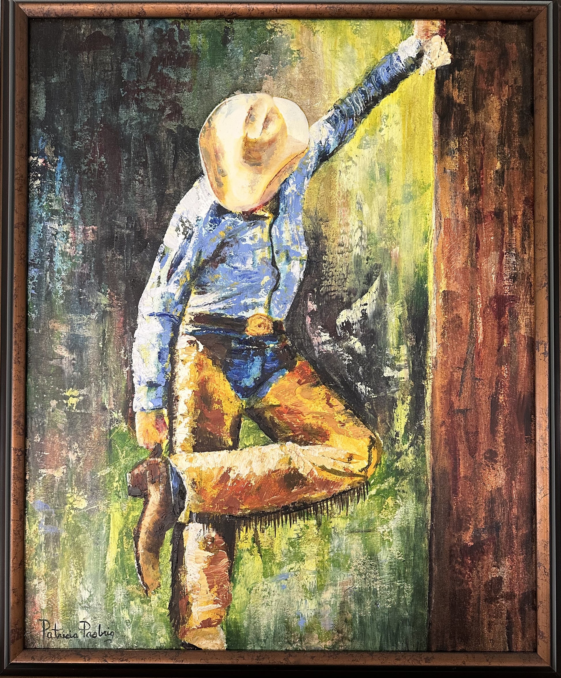 🖼️ Collector's Note: Ideal for collectors who love Southwest art and bold textures. This piece captures the essence of cowboy life with a modern twist, making it a standout addition to any Western-themed collection.